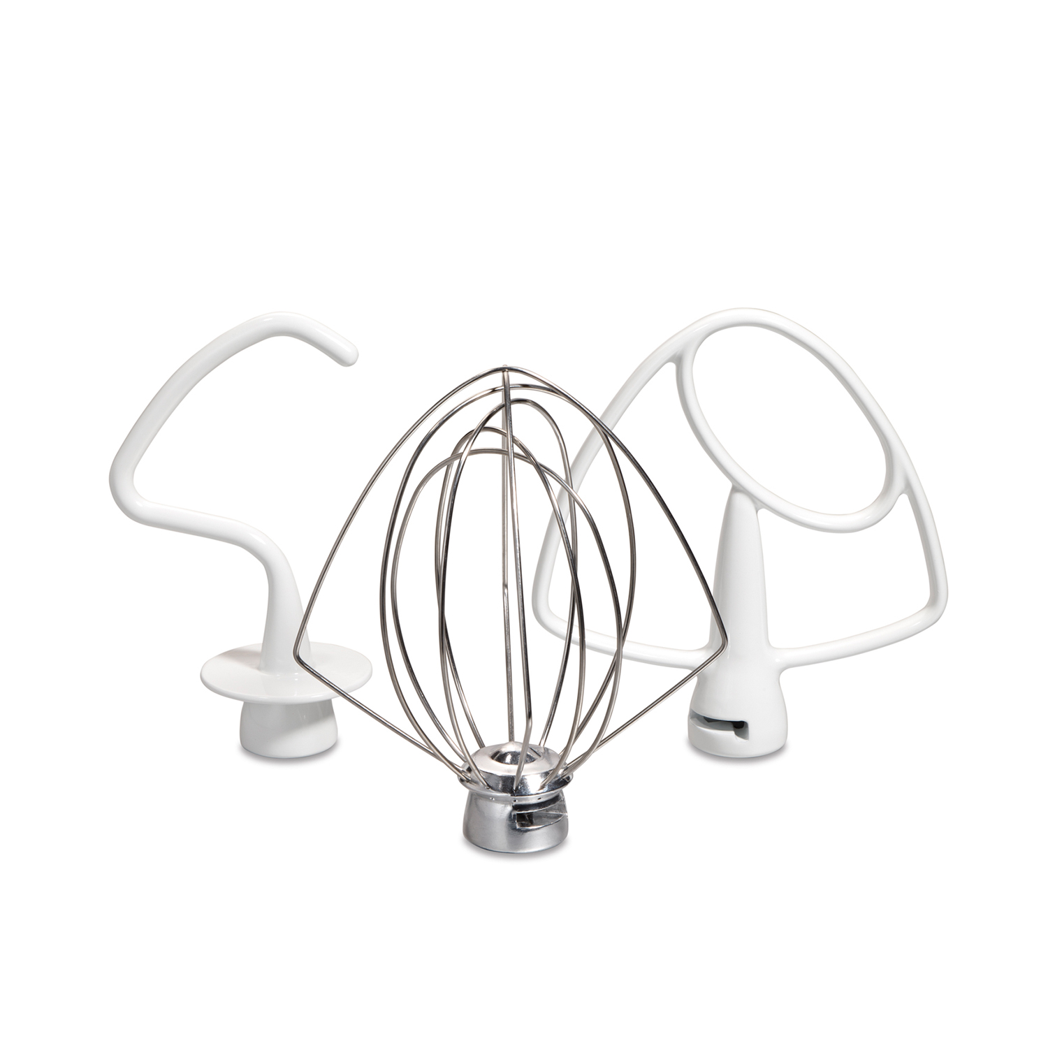 Usa el batidor plano para mezclar pasteles, masa para galletas, dulce de azúcar o papas. Para amasar masa para pan, pizza o rollos de canela usa el gancho para masa. El batidor de alambre está diseñado para batir líquidos, como claras de huevo y crema.