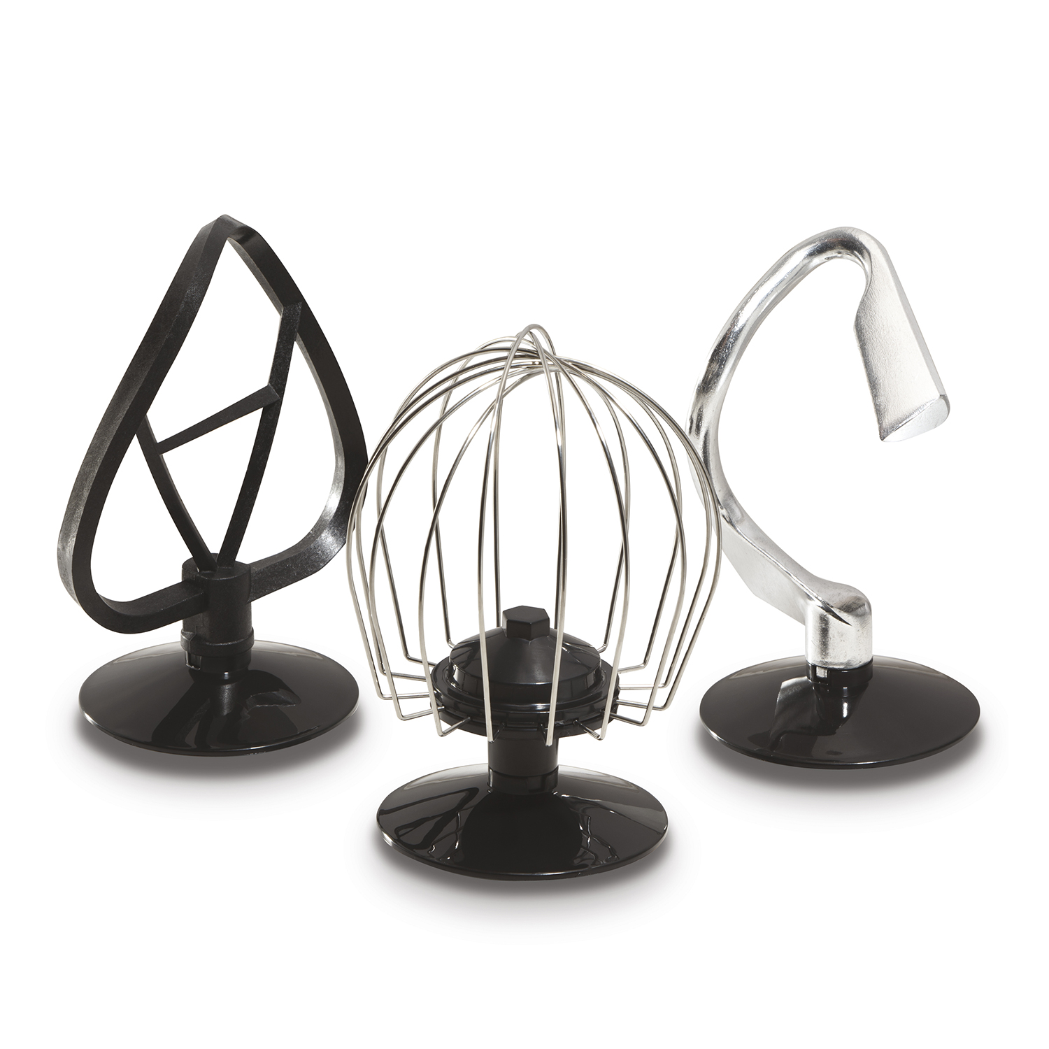 Usa el batidor plano para mezclar pasteles, masa para galletas, dulce de azúcar o papas. Para amasar masa para pan, pizza o rollos de canela usa el gancho para masa. El batidor de alambre está diseñado para batir líquidos, como claras de huevo y crema.