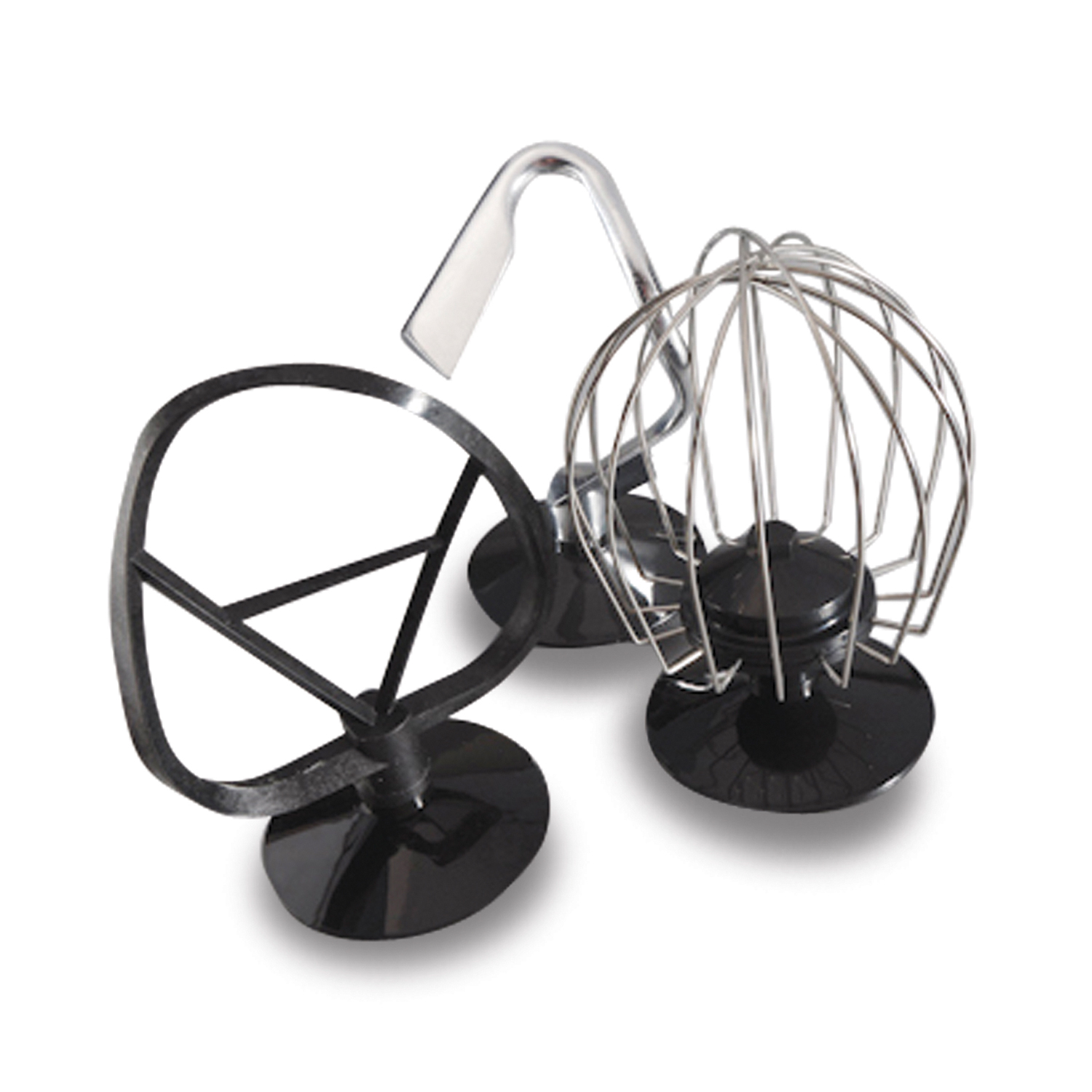 Usa el batidor plano para mezclar pasteles, masa para galletas, dulce de azúcar o papas. Para amasar masa para pan, pizza o rollos de canela usa el gancho para masa. El batidor de alambre está diseñado para batir líquidos, como claras de huevo y crema.