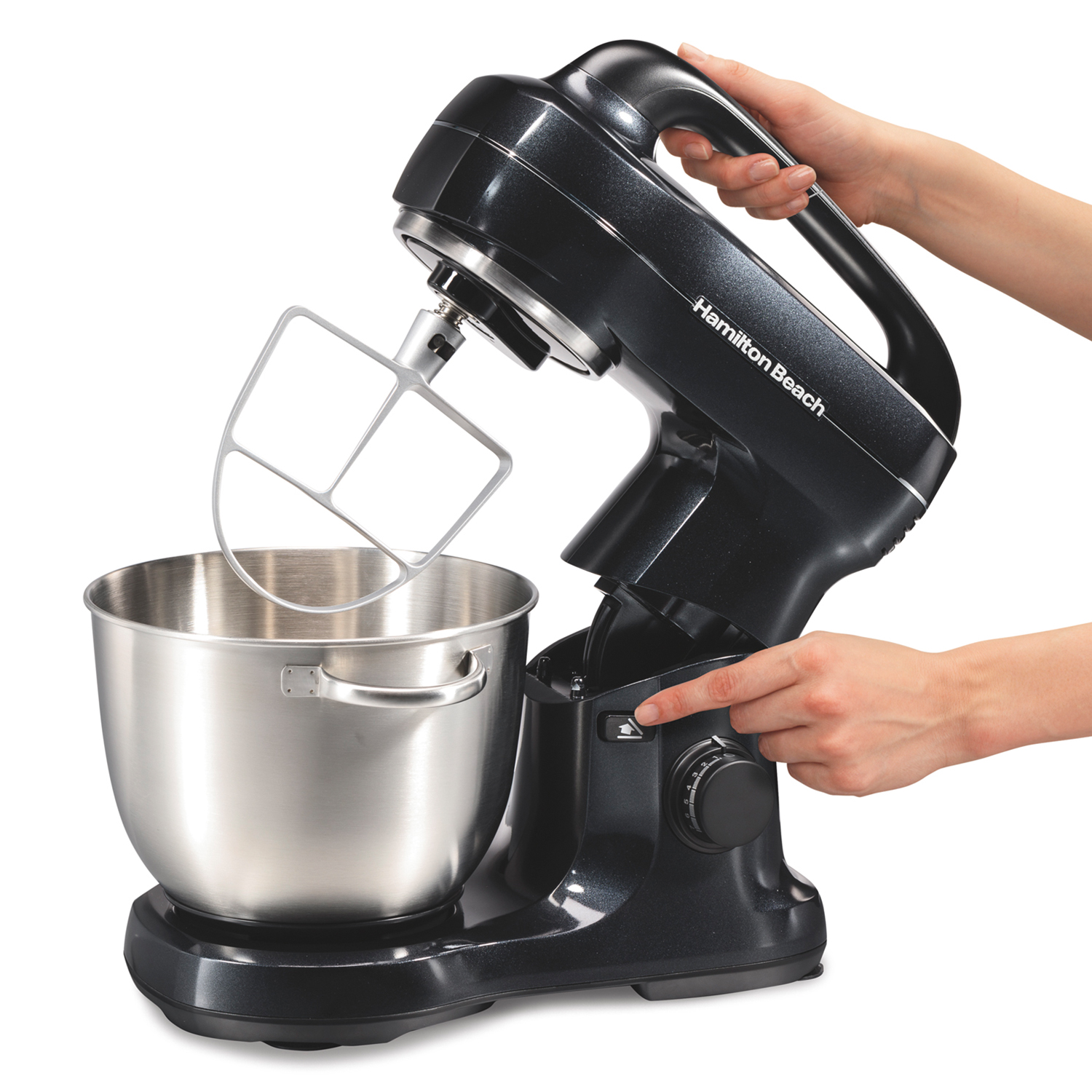La Batidora de Pedestal Hamilton Beach modelo 63394 con función manos libres está diseñada para mezclar una amplia variedad de alimentos que van desde claras de huevo ligeras y aireadas hasta masa de pan.