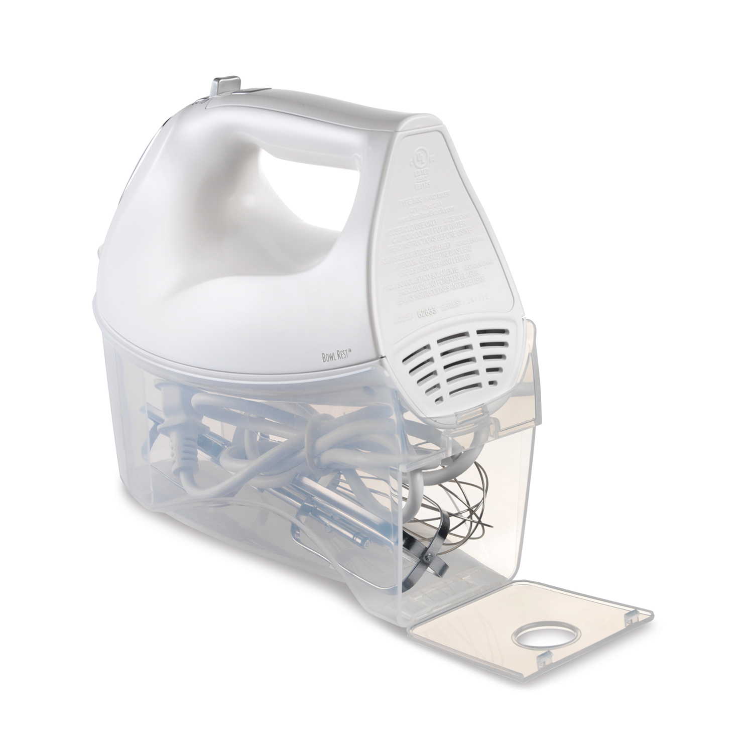 La Batidora Manual de 6 Velocidades Hamilton Beach es muy práctica y compacta, conveniente para lograr una gran variedad mezclas y guardarla en espacios reducidos cuando no la utilices.