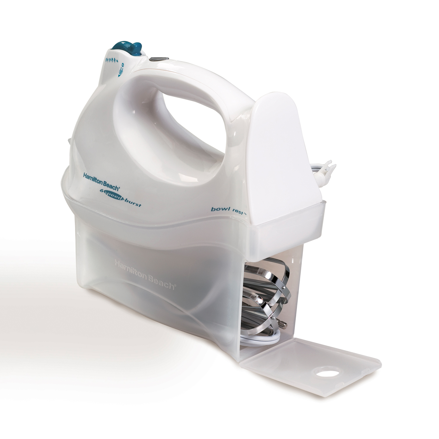 La Batidora Manual de 6 Velocidades Hamilton Beach es muy práctica y compacta, conveniente para lograr una gran variedad mezclas y guardarla en espacios reducidos cuando no la utilices.