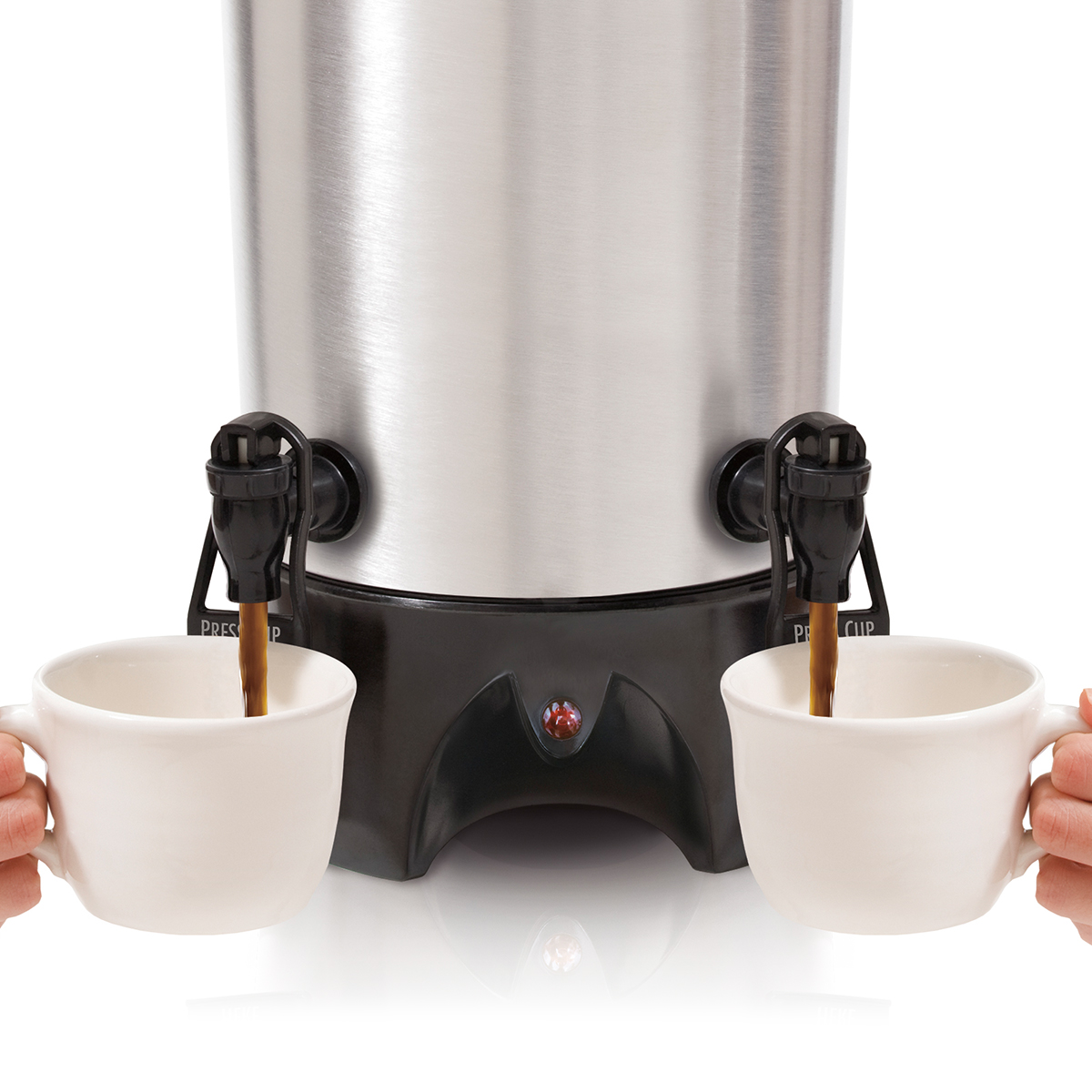 La Cafetera de Gran Capacidad con Doble Dispensador Hamilton Beach será tu mejor aliada en la oficina, en tu negocio o tus reuniones. Ahorra tiempo para tus invitados o compañeros de trabajo con los 2 dispensadores independientes, además de ser muy cómodos por la opción de servir a una mano.