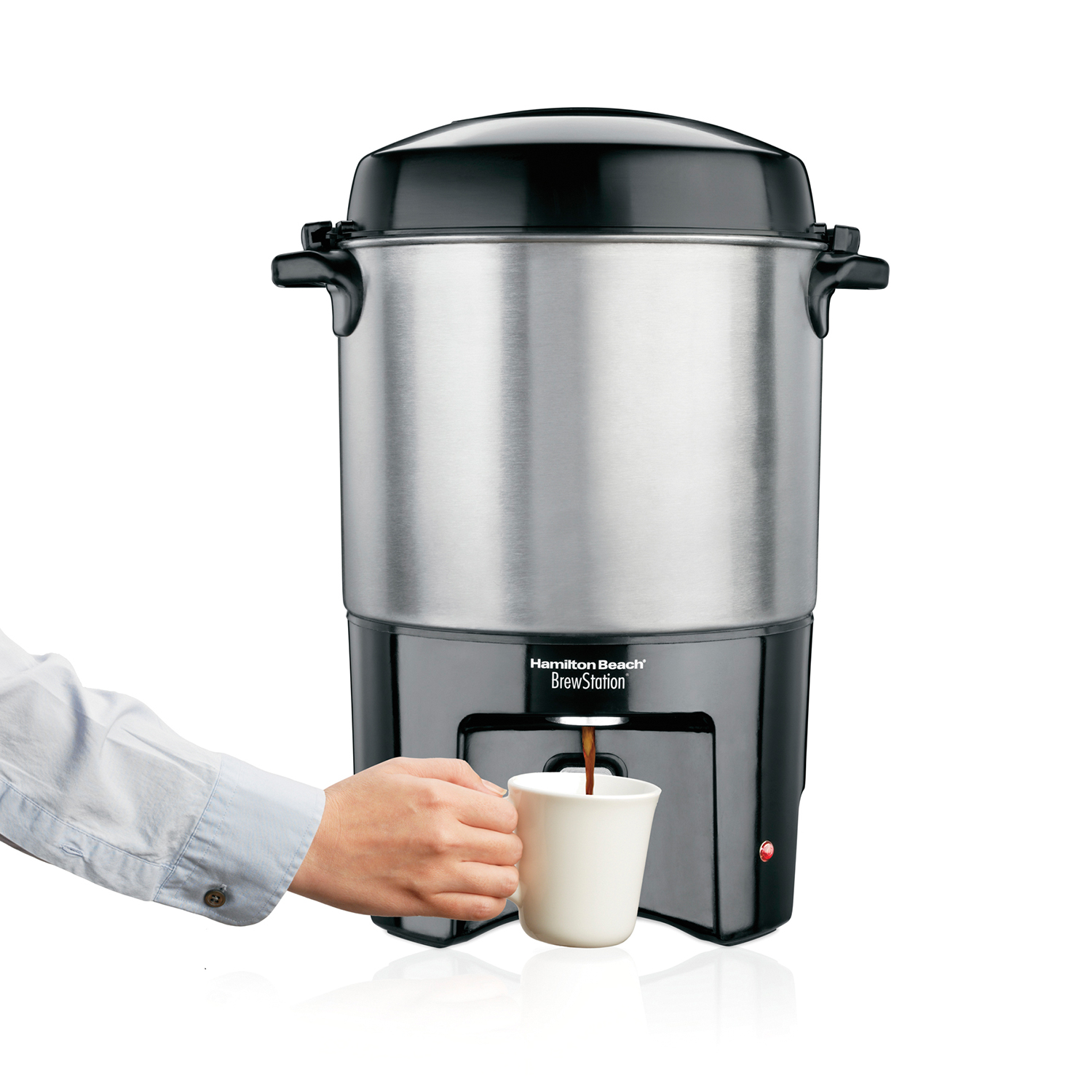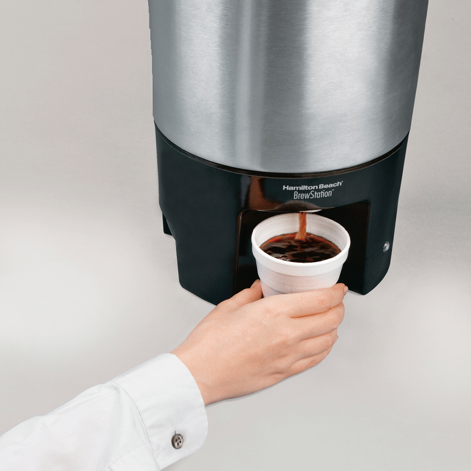Hacer café para grupos grandes no tiene que ser una tarea difícil. Con la Cafetera de Gran Capacidad Brewstation® de 40 tazas Hamilton Beach, solo agrega el café molido y deja que haga el trabajo. Al momento de la reunión, el café para hasta 40 personas estará caliente, aún con frescura y listo para servir.