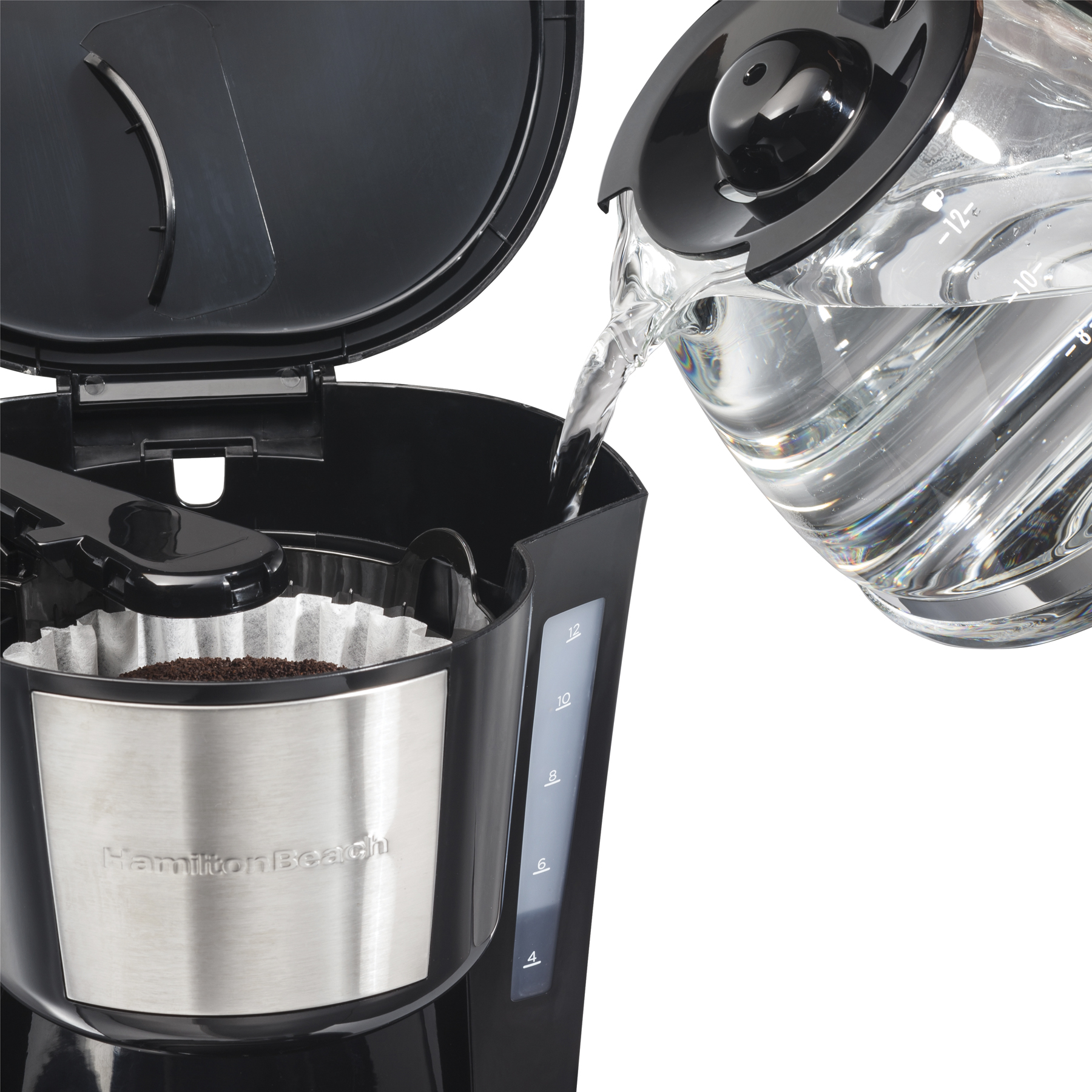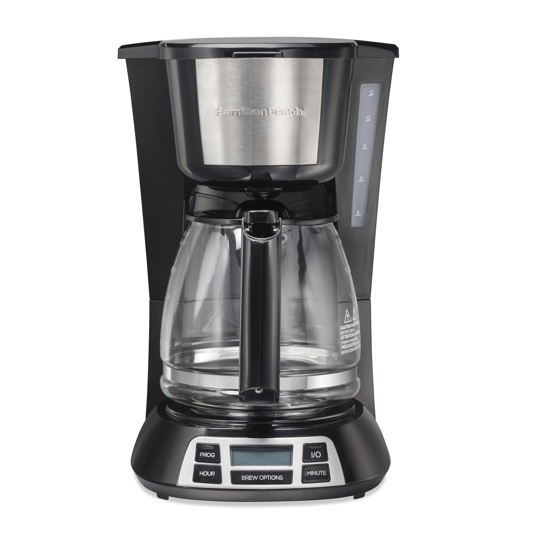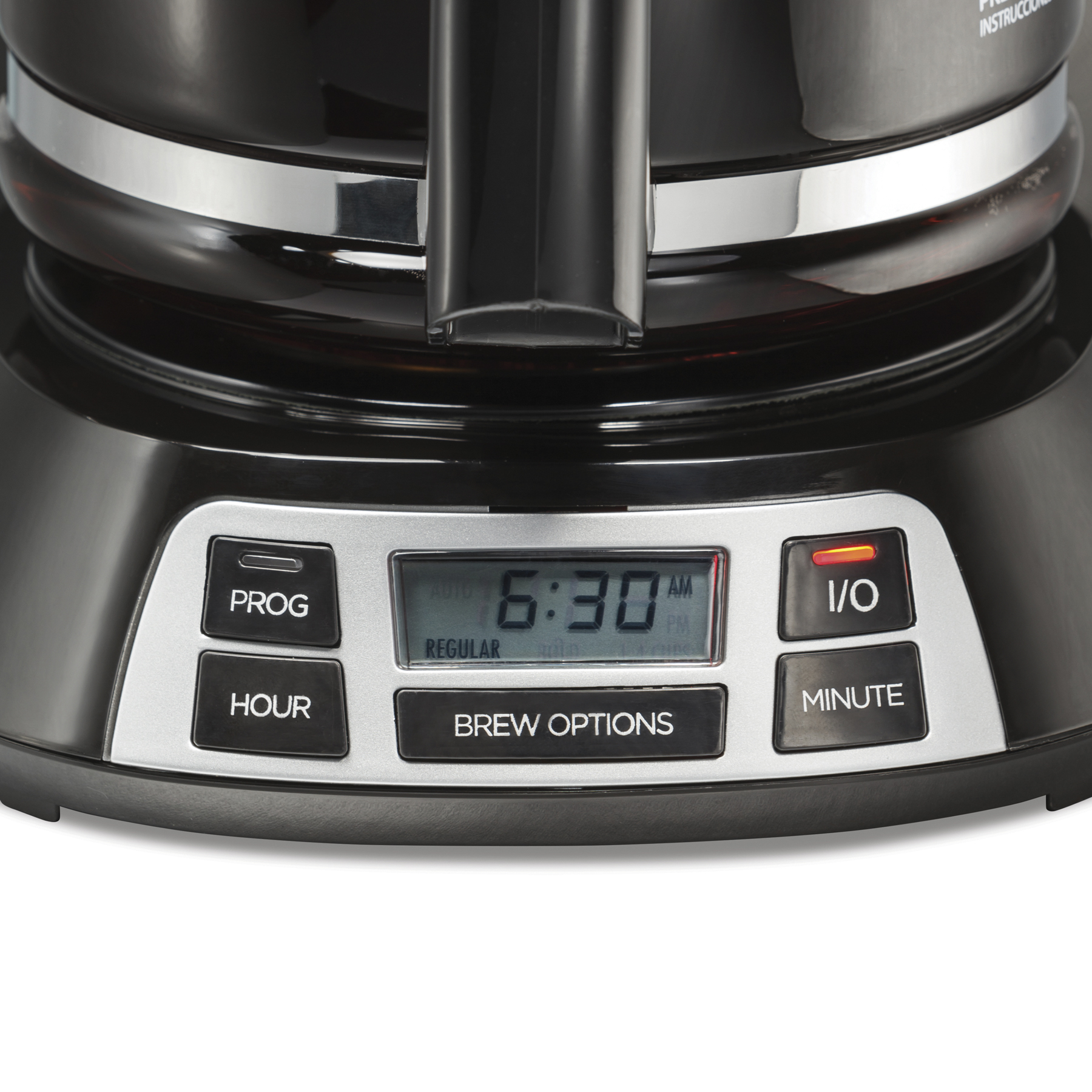 La cafetera programable de 12 tazas Hamilton Beach se puede programar con hasta 24 horas de anticipación, para que puedas asegurarte de que nunca se pierda tu llamada a despertar.