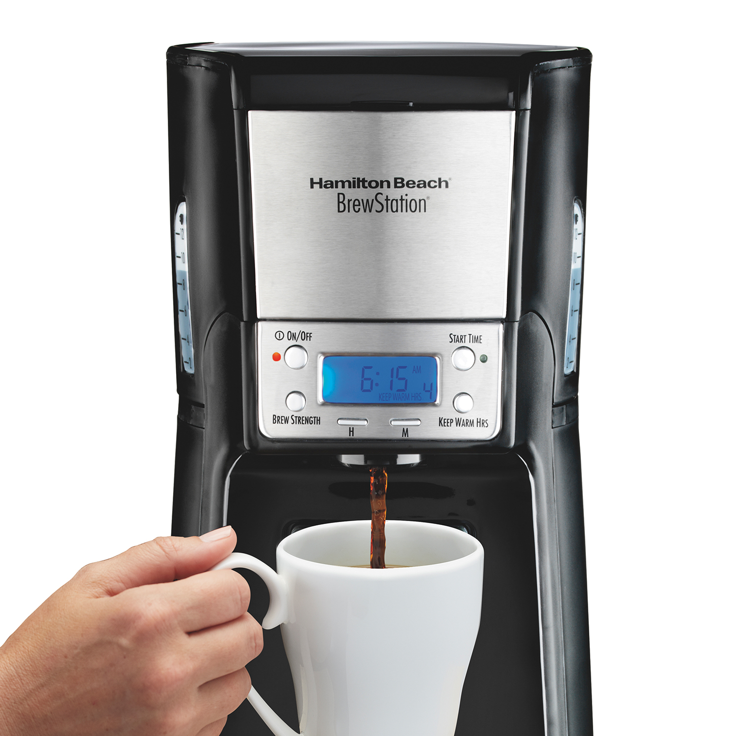 La Cafetera Programable BrewStation® de Hamilton Beach, es una cafetera única, no solo por su práctico diseño y dispensador a una mano, sino que, es la única cafetera que mantiene el sabor del café fresco por hasta 4 horas.