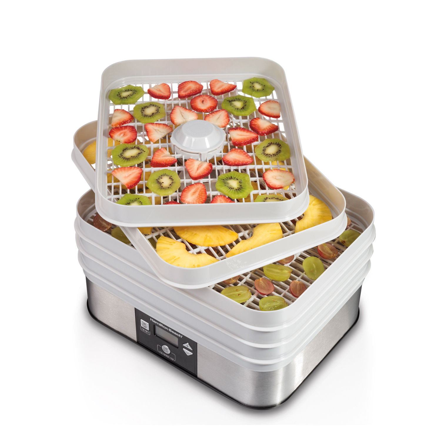 El Deshidratador de Alimentos de Hamilton Beach es un excelente aliado para todos aquellos que deseen cuidar de su salud y alimentación combinando la practicidad.Un deshidratador de alimentos te permite preparar botanas saludables. Una opción muy práctica para consumir entre comidas, en la oficina o viajes son las frutas deshidratadas; Por ejemplo: Chips de plátano, camote, betabel, manzanas con canela, fresas, entre otros.