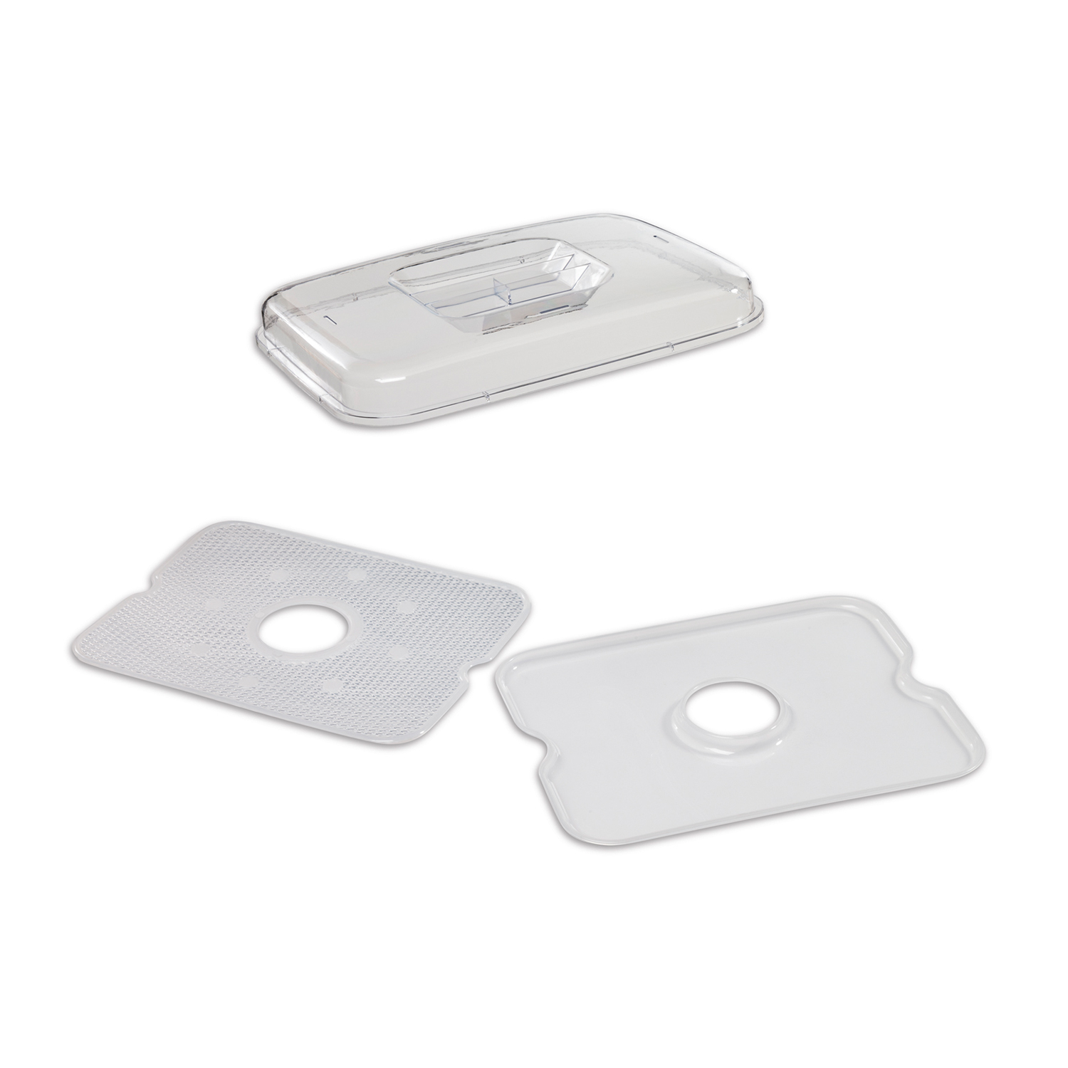 La función de flujo de aire continuo del deshidratador de alimentos Hamilton Beach® proporciona un secado uniforme, eliminando la necesidad de girar las bandejas. Una vez que hayas alineado las bandejas, hayas ajustado la temperatura y el temporizador, no hay nada que hacer hasta que suene el temporizador. Sin embargo, la tapa transparente permite ver cómo va el proceso.