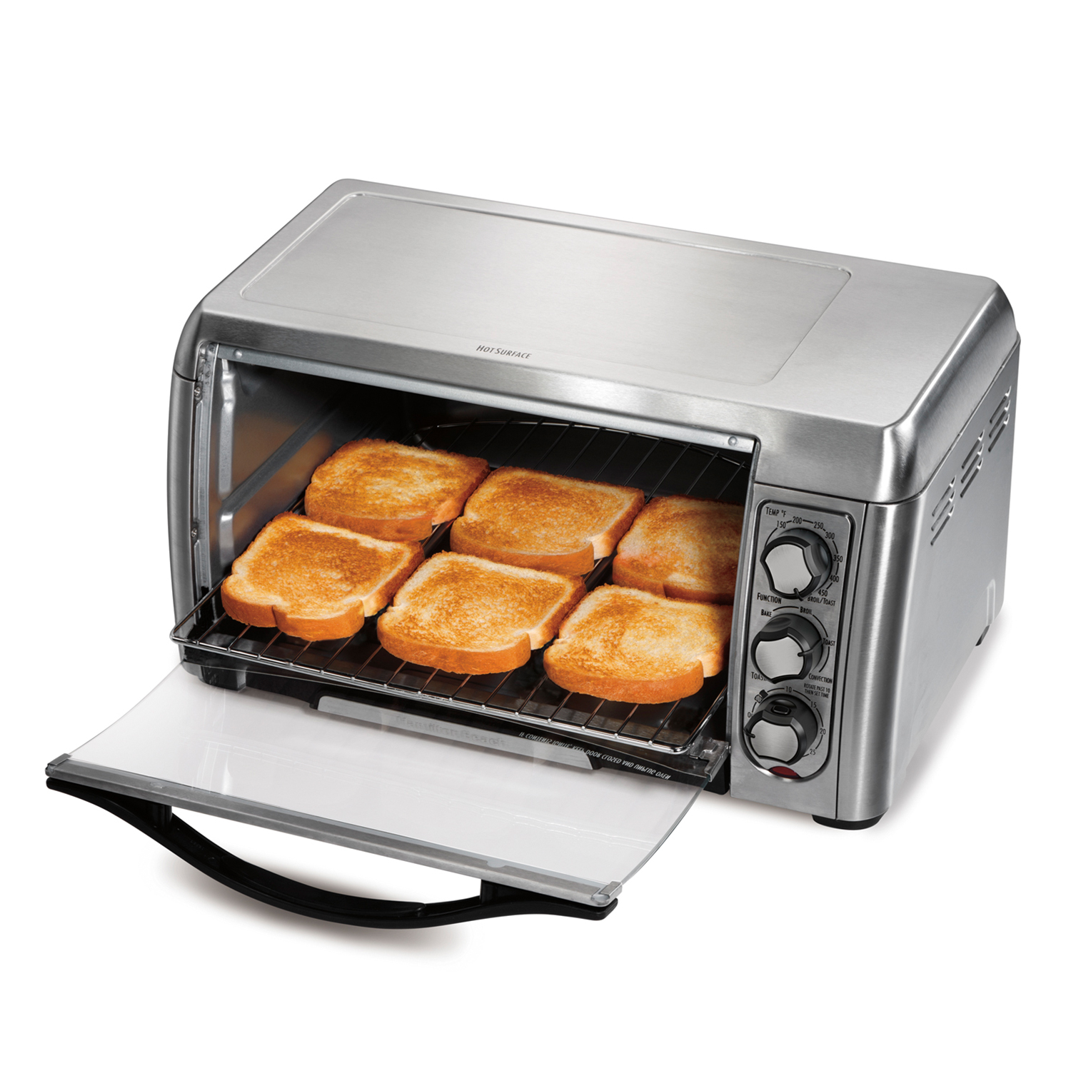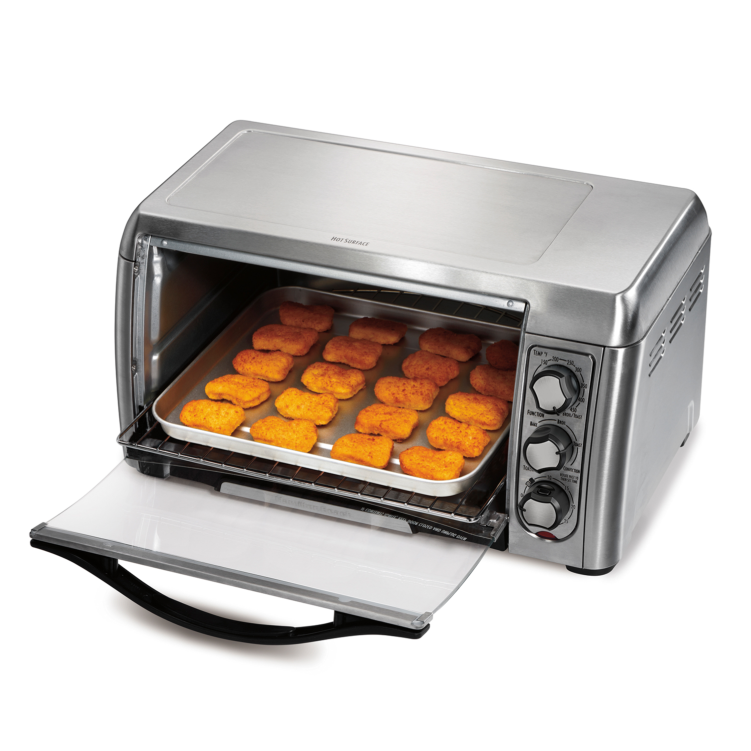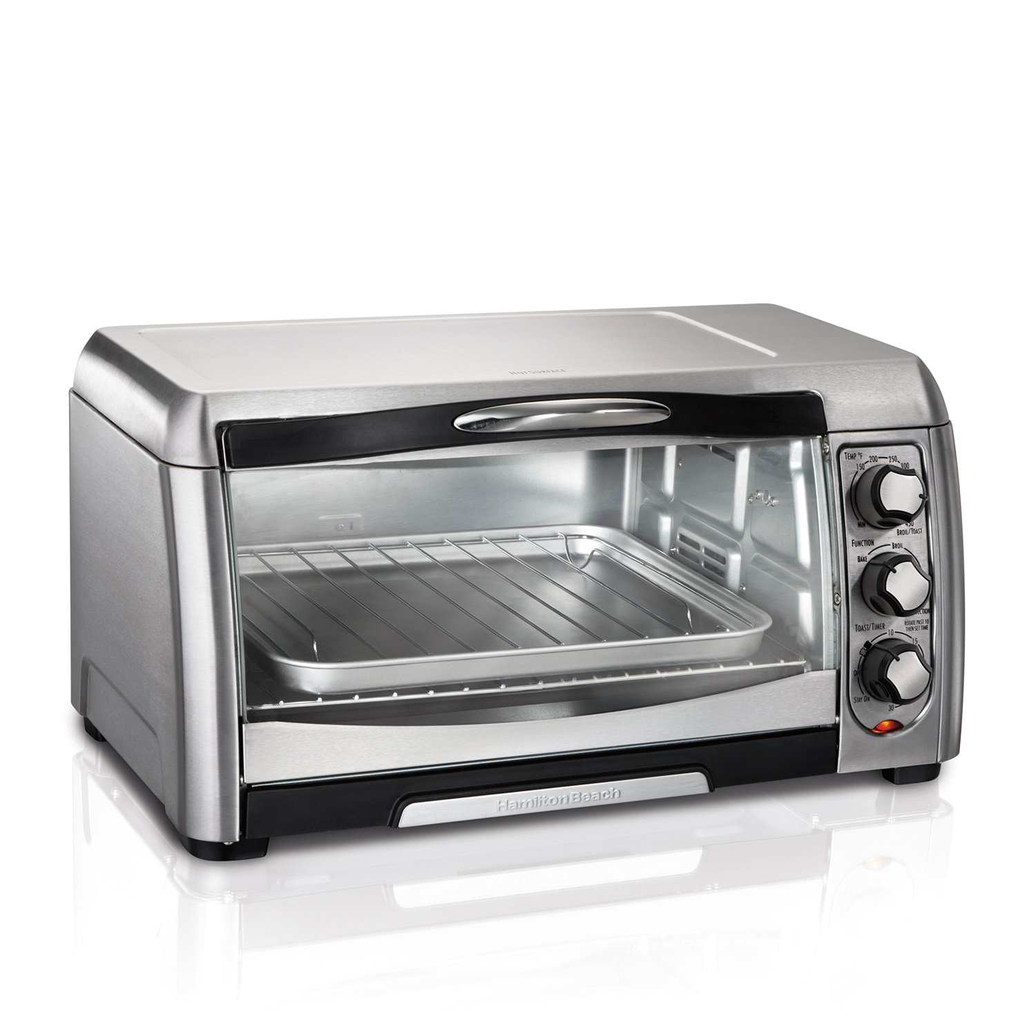 Si buscas practicidad en tu cocina el Horno Tostador de 6 Rebanadas de Hamilton Beach será un básico que seguro ocuparás todos los días. Este horno es compacto por fuera pero amplio por dentro, es ideal para 6 rebanadas de pan o para colocar una pizza de hasta 30 centímetros.
