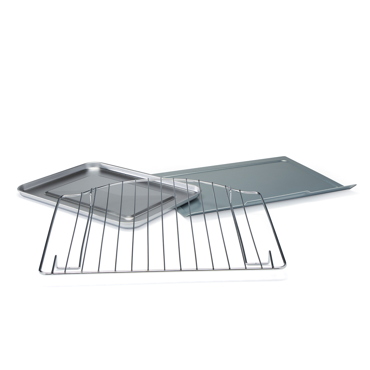 • Incluye bandeja para hornear y rejilla para asar - la bandeja de asar se desliza debajo de la rejilla para asar