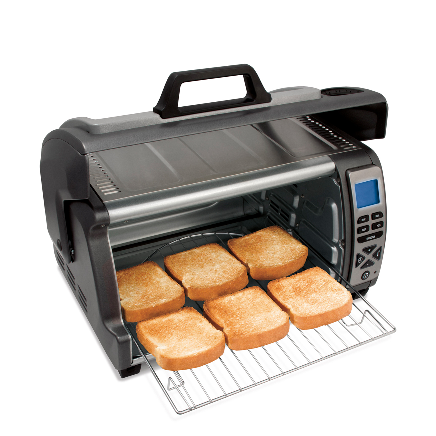 A diferencia de muchos otros hornos tostadores, este horno te permite elegir entre hornear y convección. La función de horneado es excelente para hacer deliciosos pasteles y postres. La función de convección, para obtener una pizza crujiente y dorada y una corteza caramelizada y uniformemente cocida en productos horneados. La convección proporciona una cocción más uniforme a medida que el ventilador hace circular aire caliente continuamente alrededor de los alimentos. La convección generalmente reduce el tiempo de cocción hasta en un 25%.