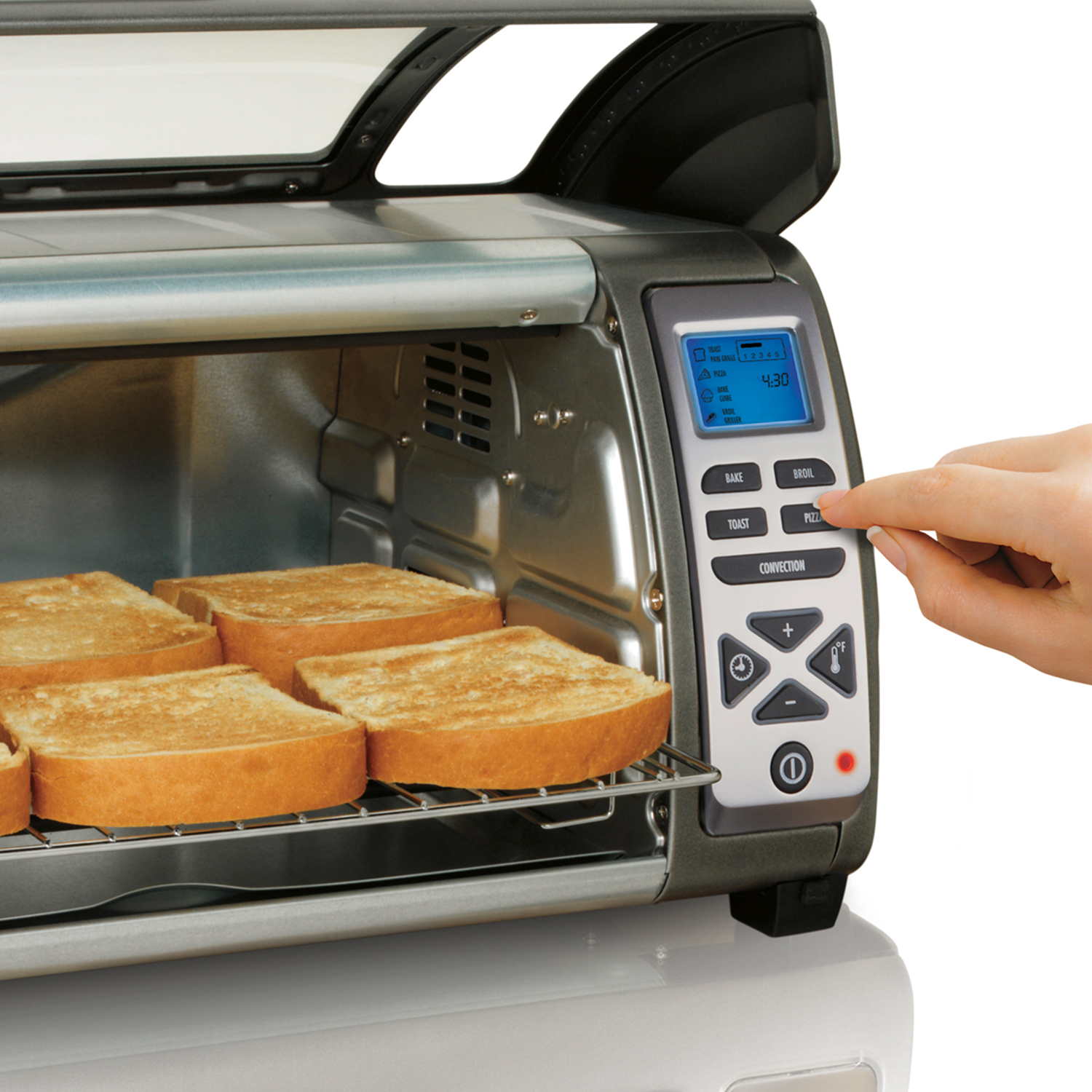 Si buscas resultados deliciosos, pero sin perder la practicidad en tu cocina, el Horno Tostador de 6 Rebanadas Easy Reach™ de Hamilton Beach será tu gran aliado.