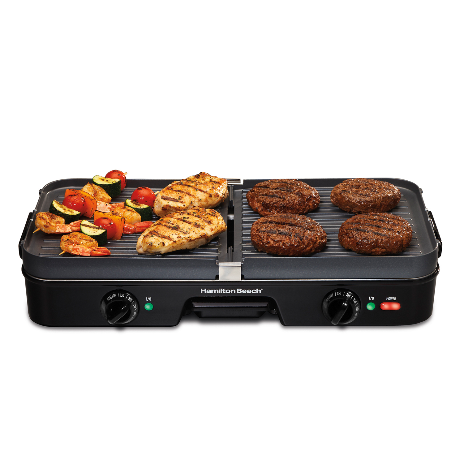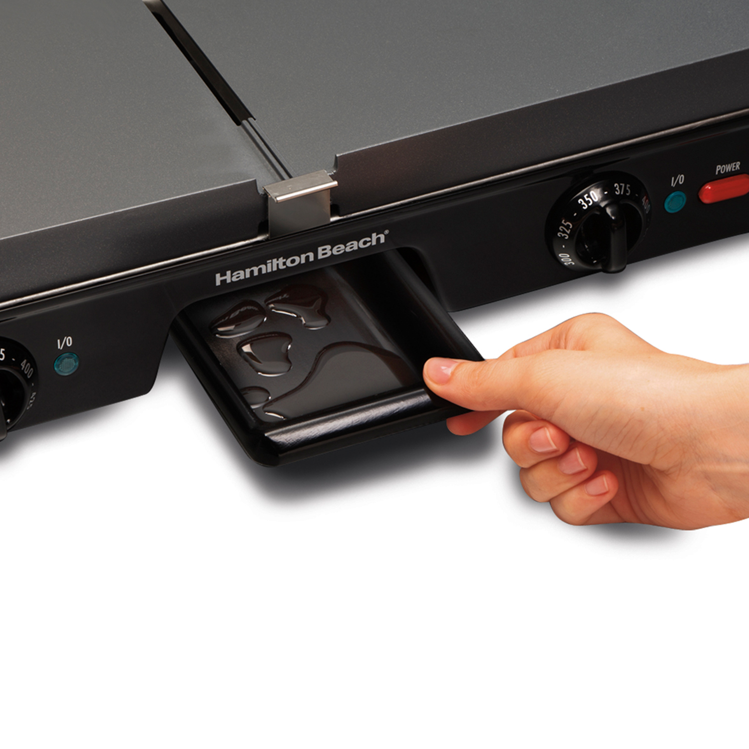 La Parrilla / Plancha 3 en 1 de Hamilton Beach cuenta con rejillas antiadherentes que recolectan y drenan el exceso de grasa en el canal central por lo que podrás consumir alimentos mucho más saludables y en un electrodoméstico mucho más práctico y sencillo de utilizar.