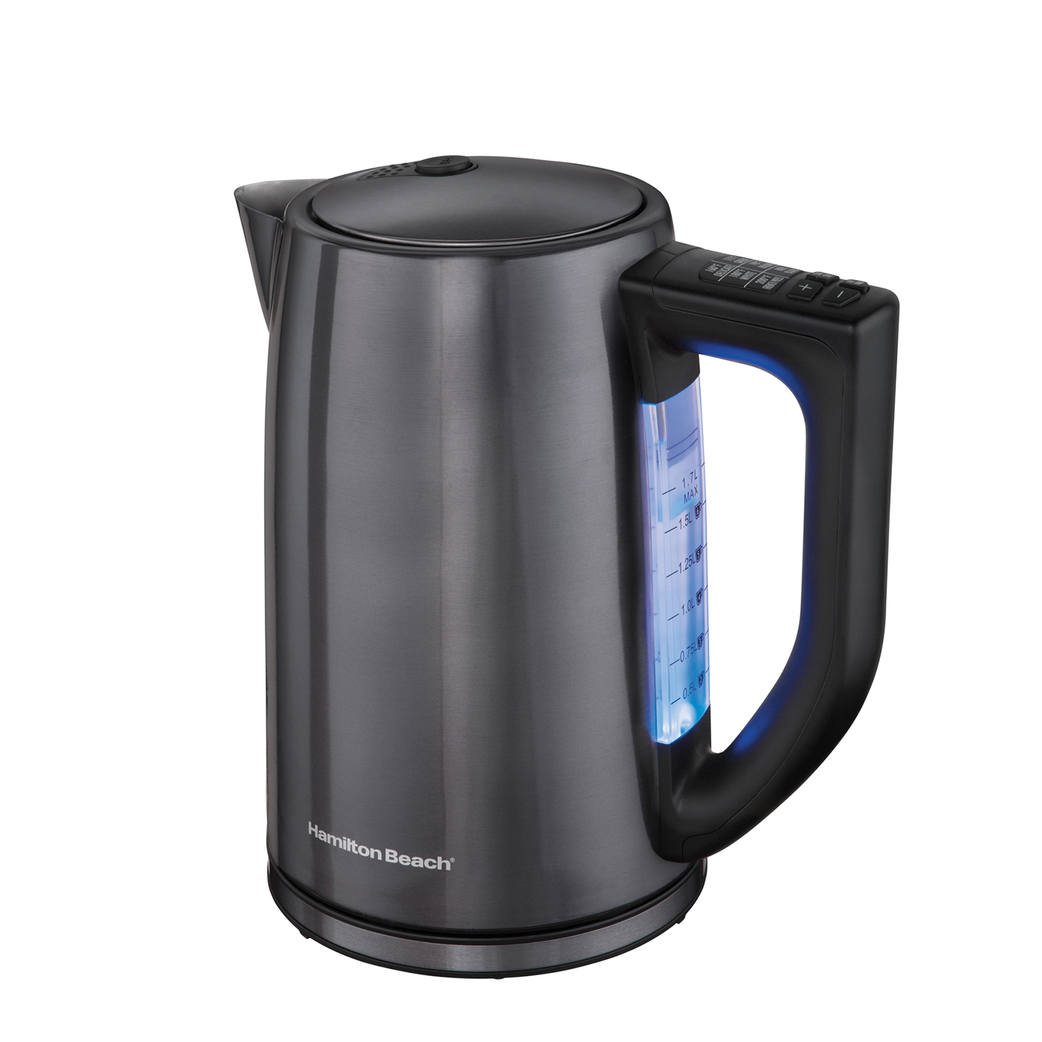 Calienta agua en instantes de la forma más fácil y segura con la Tetera con Temperaturas Preprogramadas Hamilton Beach. El agua para una taza estará hervida perfecta para un té o café soluble en menos de un minuto.