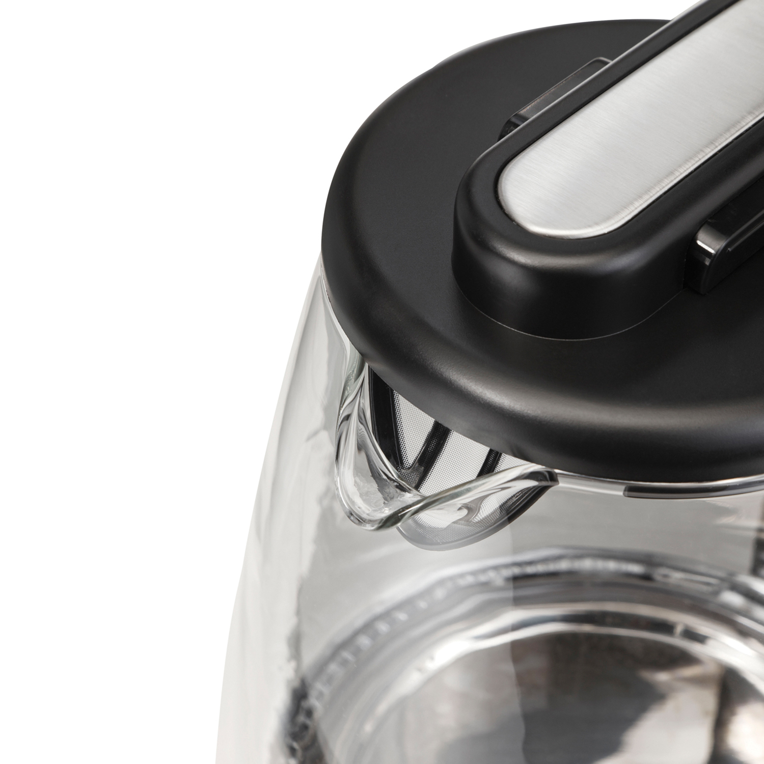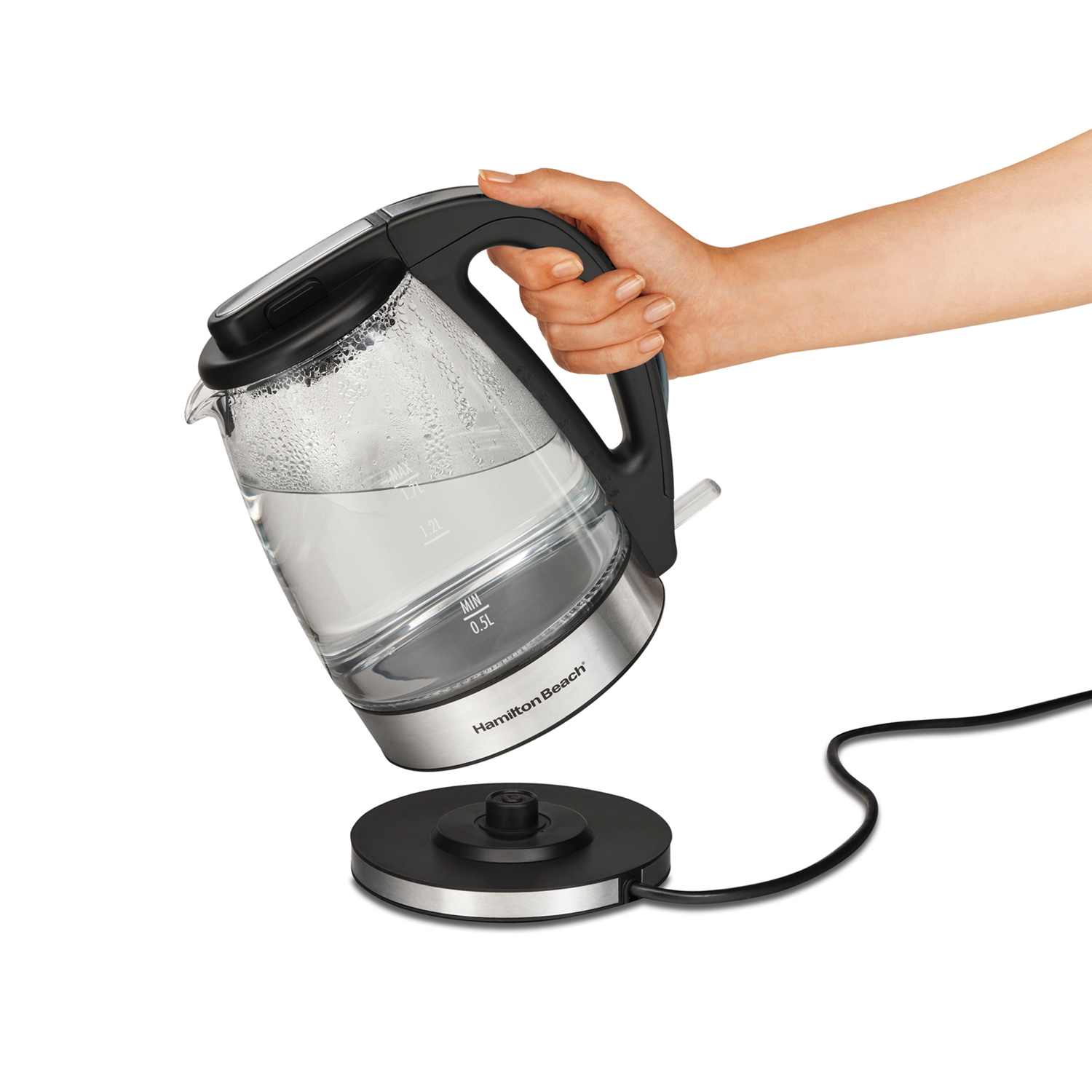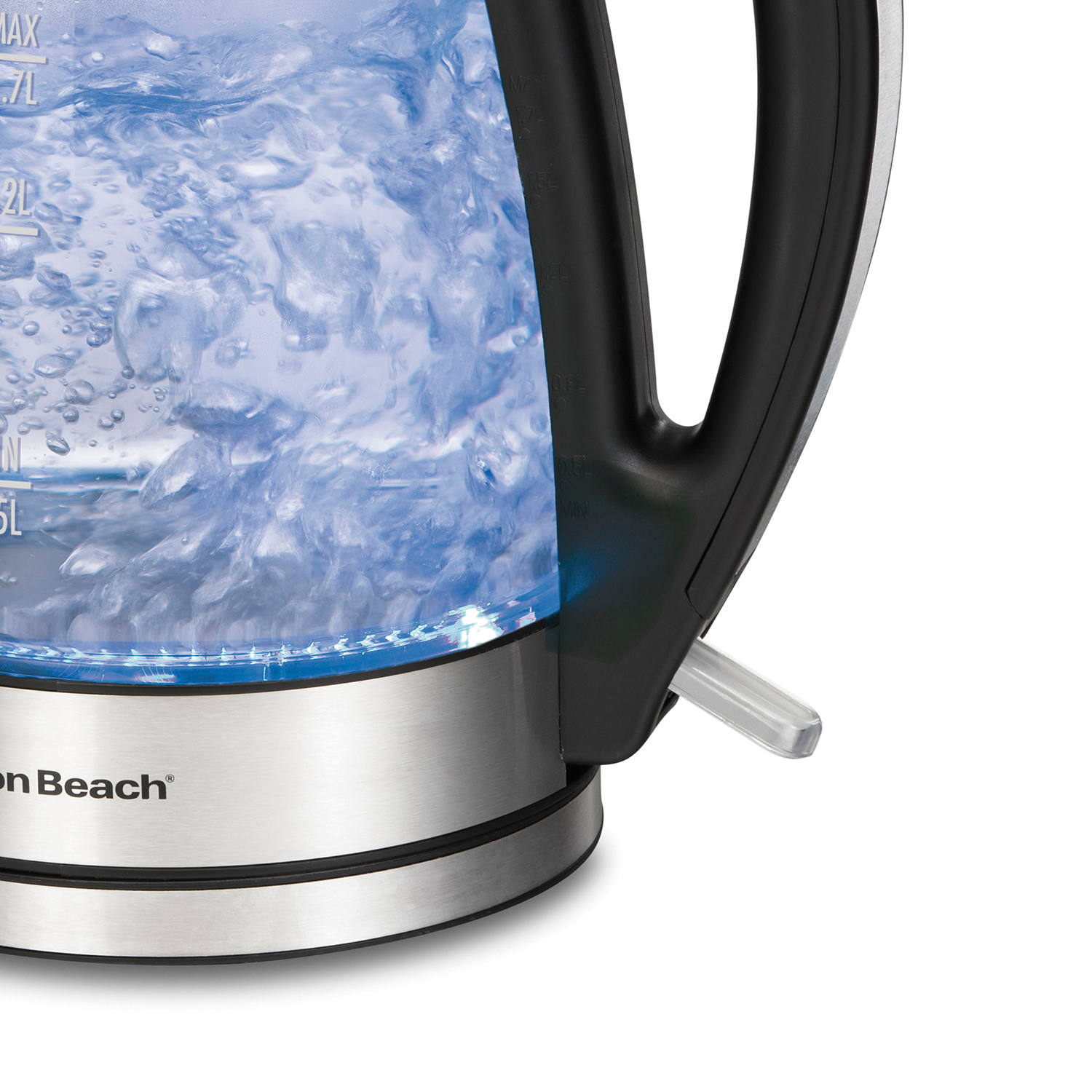 Calienta agua en instantes de la forma más fácil y segura con la Tetera de Vidrio de 1.7 Litros de Hamilton Beach. Relájate con la suave iluminación azul mientras el agua hierve para prepararte un té delicioso a cualquier hora del día.